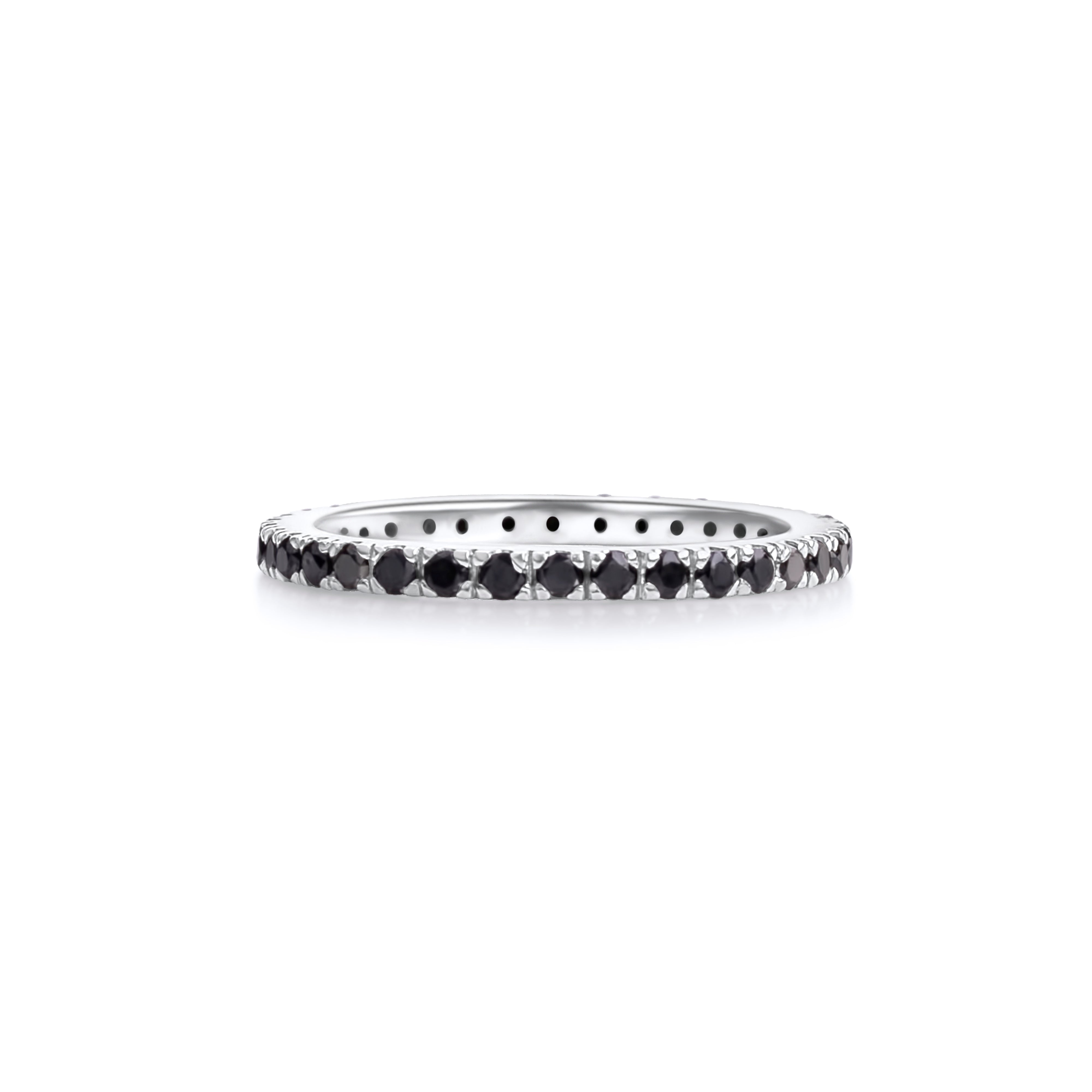 Our black diamond wedding band in 18ct yellow or white gold with diamonds all way round.