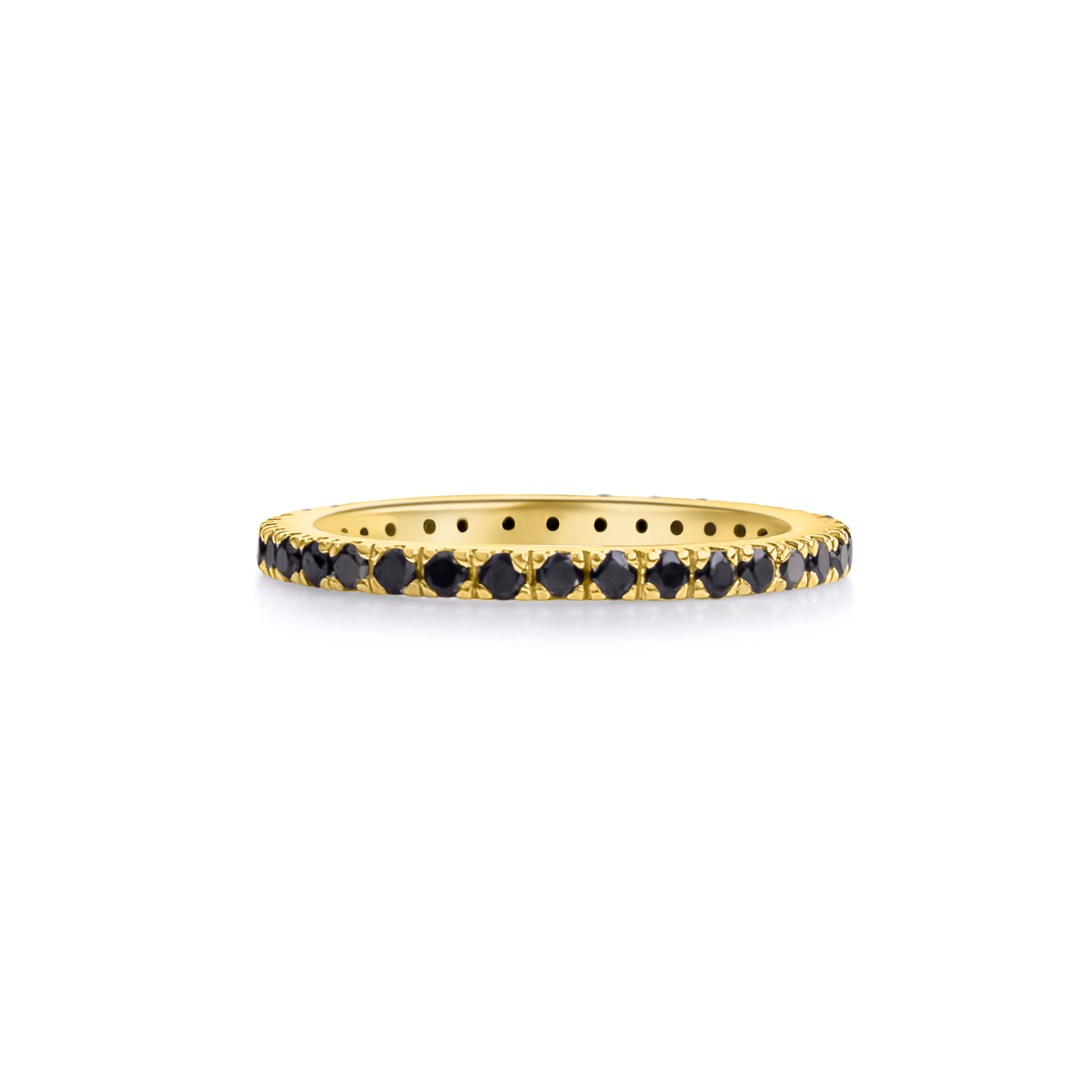 Black diamond wedding band in yellow gold