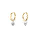 These exquisite earrings showcase timeless elegance with a contemporary edge. Crafted in 18ct yellow gold, each huggie-style hoop delicately suspends a white gold drop, 0.34ct of round brilliant cut diamonds. Each diamond is expertly cut to ensure maximum brilliance and fire.
