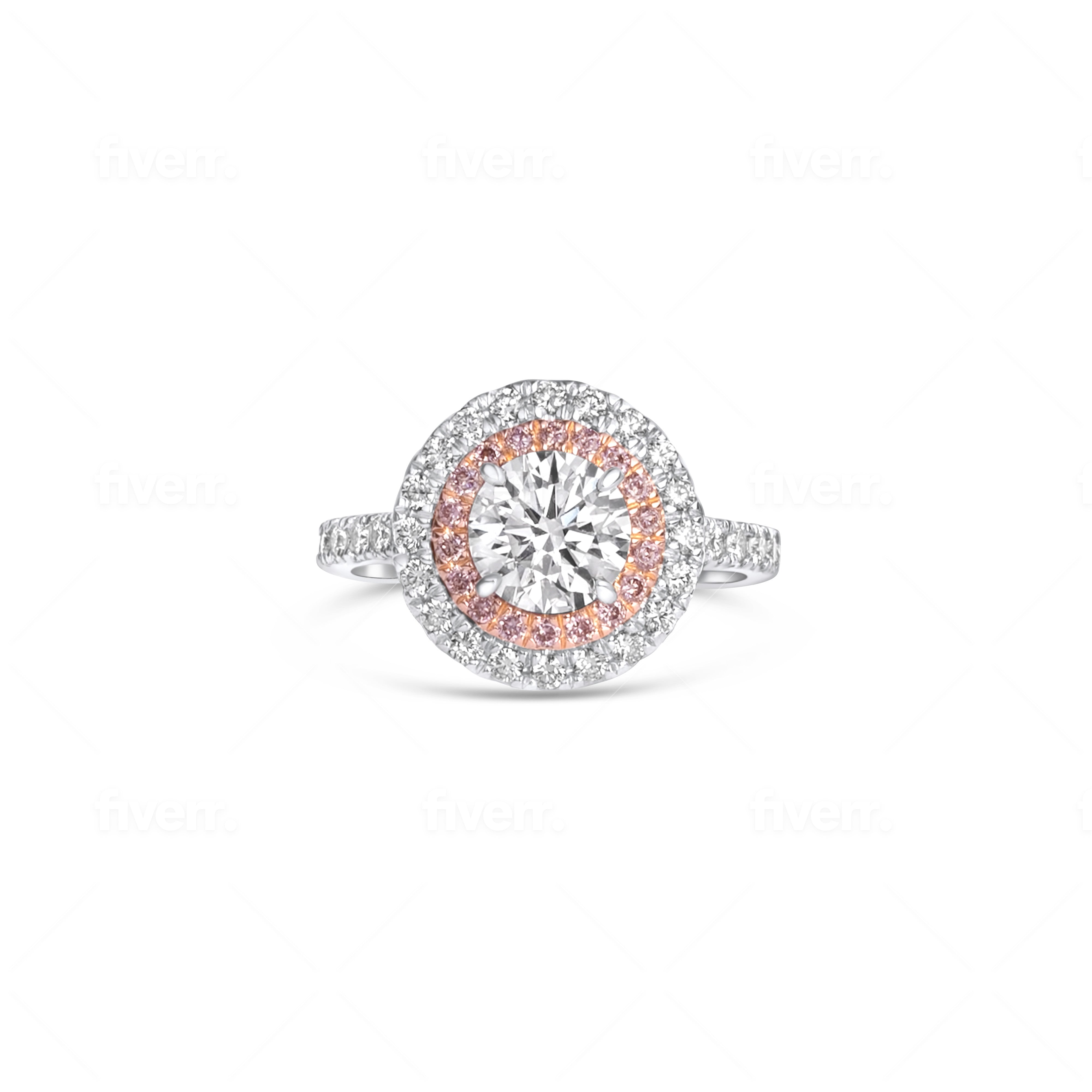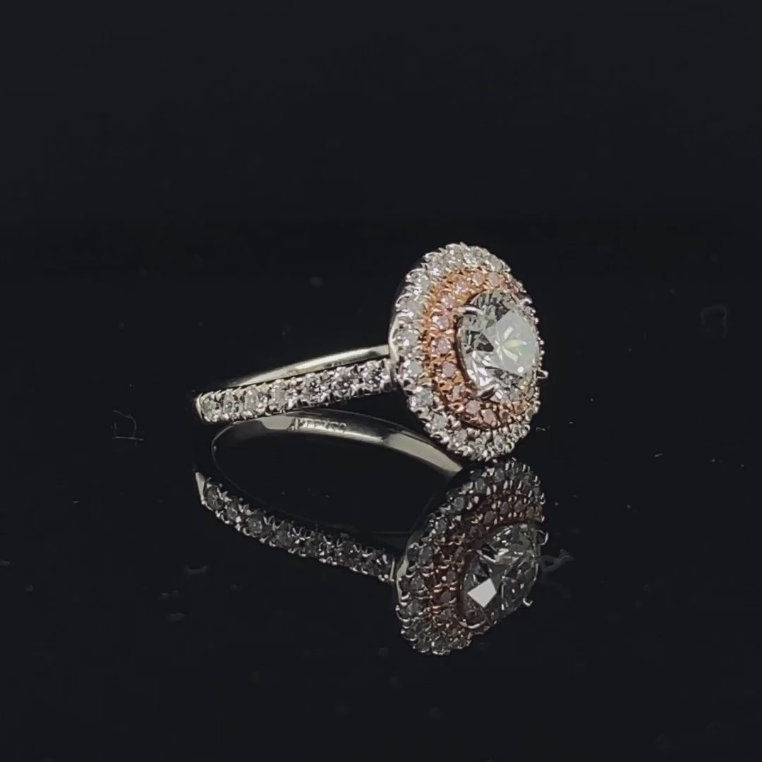 Round Brilliant Diamond Halo Ring – Argyle Pink & White Diamonds in Platinum or White Gold