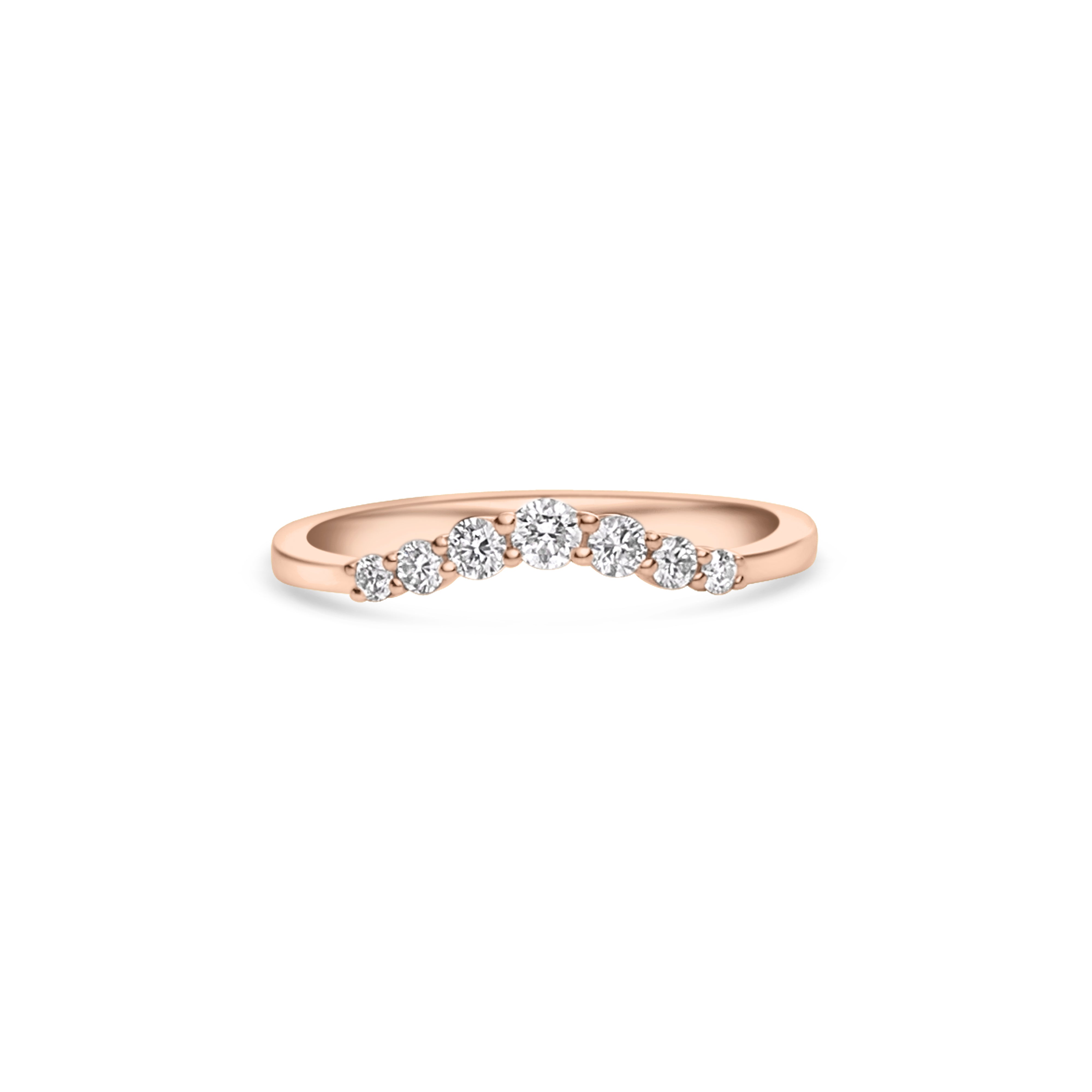 Delicately feminine and timelessly elegant, this 18ct rose gold wedding band features a graceful row of graduated round brilliant diamonds, each expertly set to create a natural flow of sparkle and symmetry. The warm blush tone of the rose gold beautifully complements the brilliance of the diamonds, making it an ideal pairing with a solitaire engagement ring or a striking stand-alone piece.